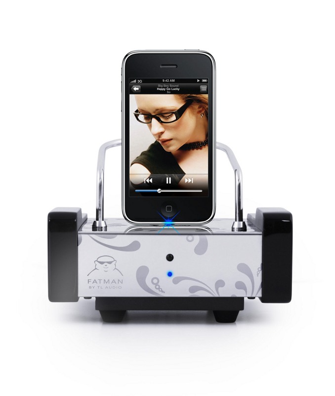 Fatman to firma powstała w 2006 roku. Urządzenia tej marki charakteryzują się ciekawym, przyciągającym uwagę wyglądem oraz bogatą funkcjonalnością. Model iTube MKII posiada w zestawie stację dokującą dedykowaną do urządzeń Apple oraz wbudowany przetwornik cyfrowo-analogowy DAC (poniżej zdjęcia).